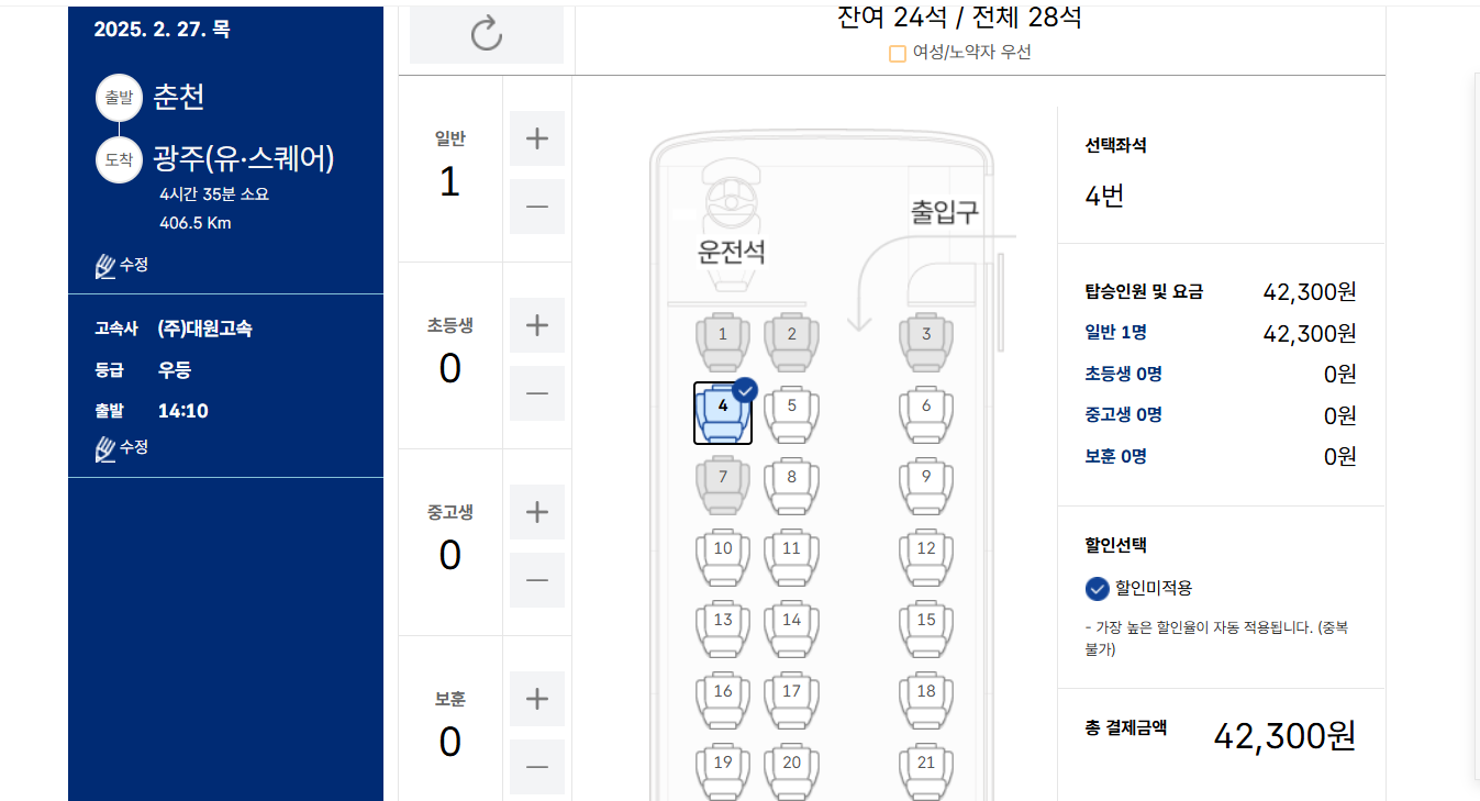 좌석 확인: 예매 후 실제 좌석과 다를 수 있으니 탑승 전 재확인 필수