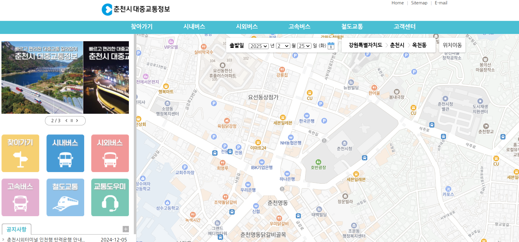 2. 춘천시 대중교통 정보 사이트