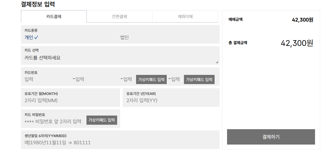 좌석 선택 후 신용카드나 모바일 결제로 결제