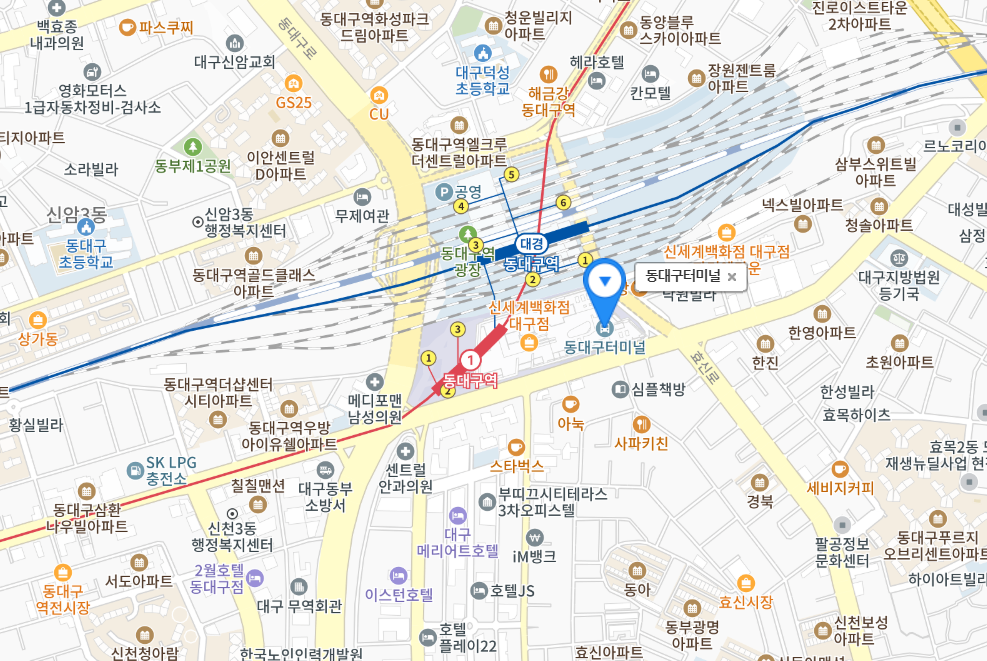 동대구터미널: 동대구 복합환승센터 버스 플랫폼.