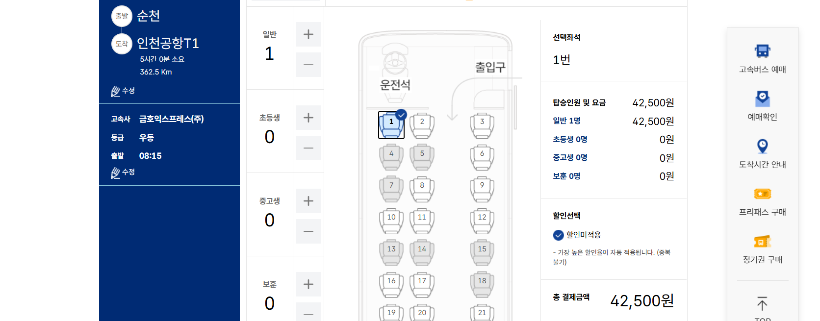 출발 1~2일 전 예매를 추천드려요. 특히 주말이나 공휴일에는 매진될 수 있으니 서두르세요!
