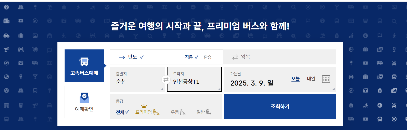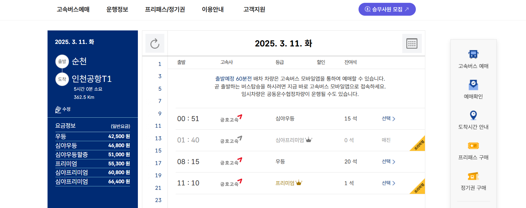 첫차: 오전 4:30 (심야 우등/프리미엄 옵션 가능)