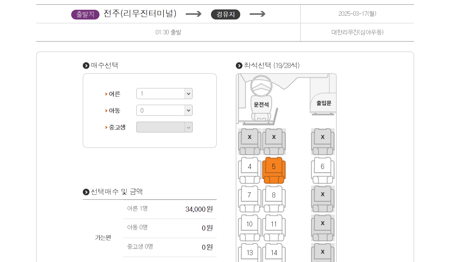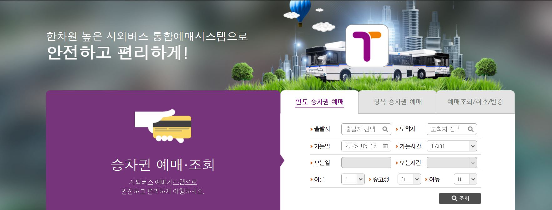 예매는 시외버스통합예매시스템홈페이지나 티머니 앱에서 가능하며, 인기 노선이므로 4~5일 전에 미리 예약하는 것이 좋습니다