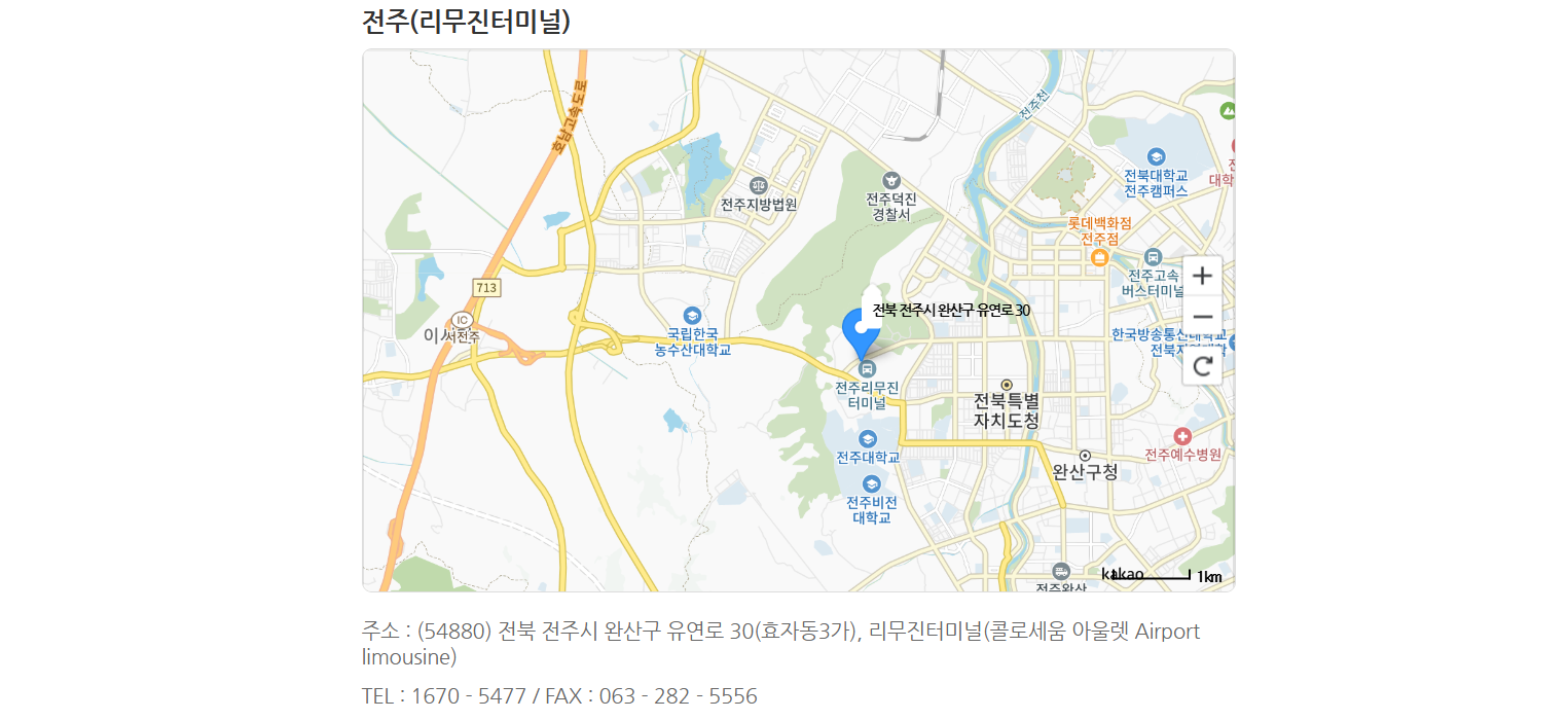 문의처: 전주시외버스터미널(063-272-5151), 대한관광리무진(1670-5477).