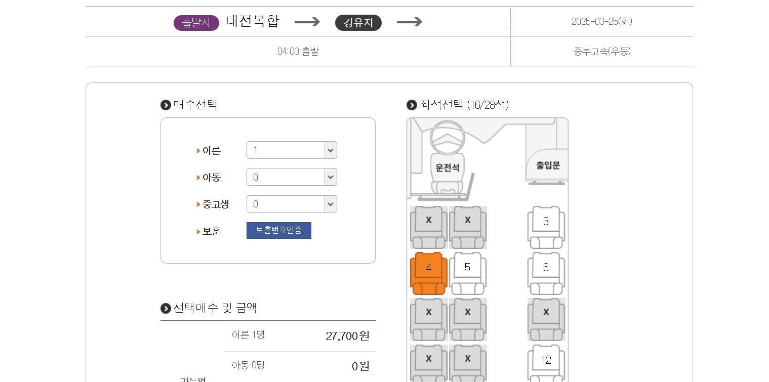 편의 시설: 버스 내 화장실이 없으니, 출발 전 꼭 화장실을 다녀오세요.