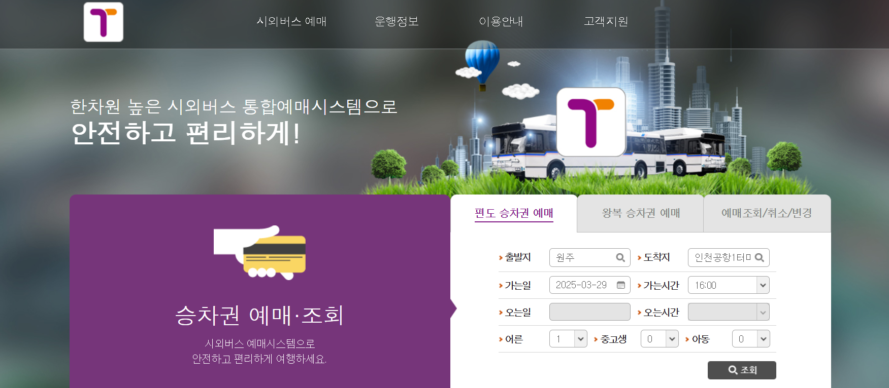 예매 플랫폼 접속: 티머니 GO 앱 또는 버스 타고 웹사이트에 접속합니다.