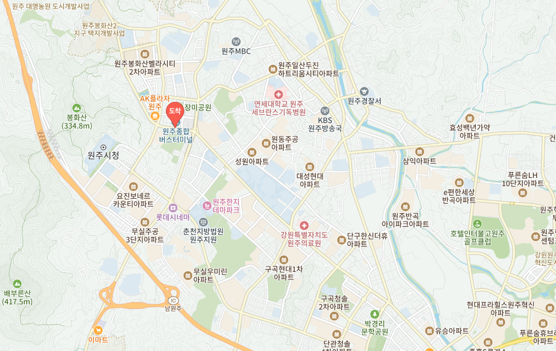 주소: 강원특별자치도 원주시 단계동 877-1 (원주종합버스터미널)