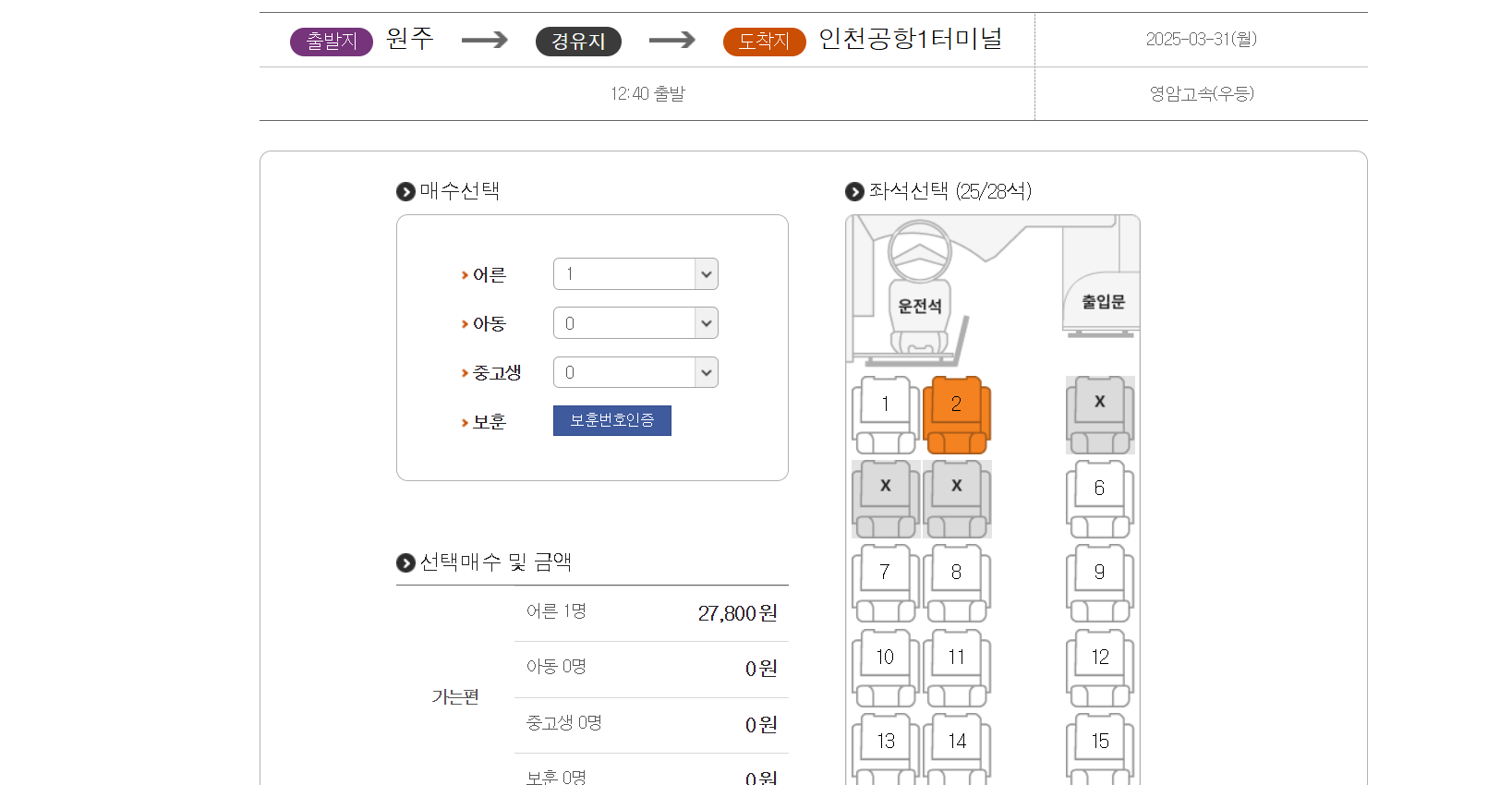 인원수를 입력하고 좌석을 선택합니다