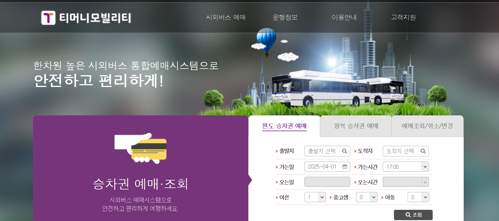 목적지에 따라 터미널을 확인하고 맞는 시간표를 선택하세요.