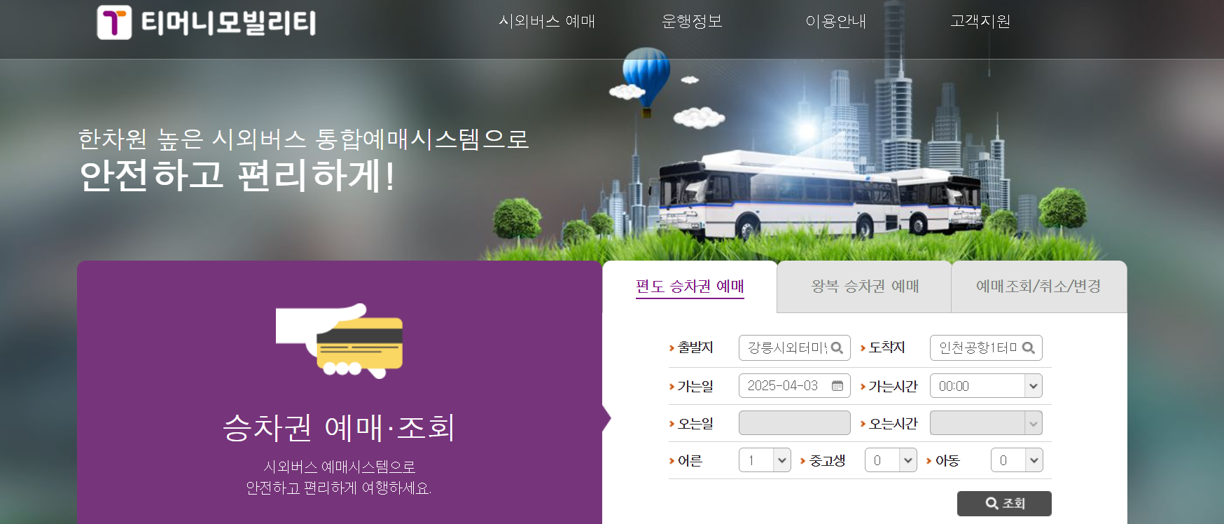 예약 사이트 접속: 강릉 인천공항 리무진 버스 공식 웹사이트나 제휴된 여행사 웹사이트를 방문합니다.