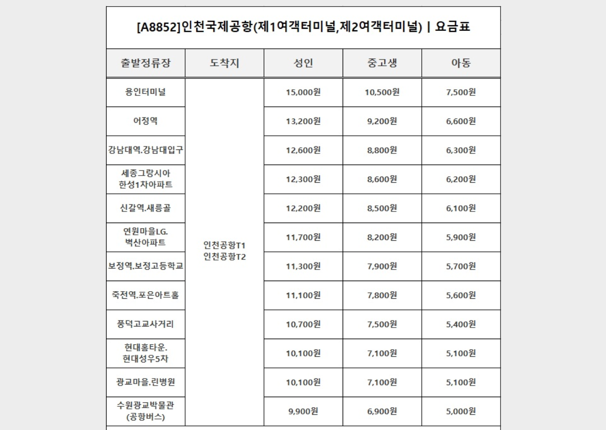 8852번 리무진 버스는 용인과 인천공항을 연결하는 편리한 교통수단으로, 정확한 시간표와 예매 방법을 알아두면 여행 계획을 더욱 효율적으로 세울 수 있습니다.