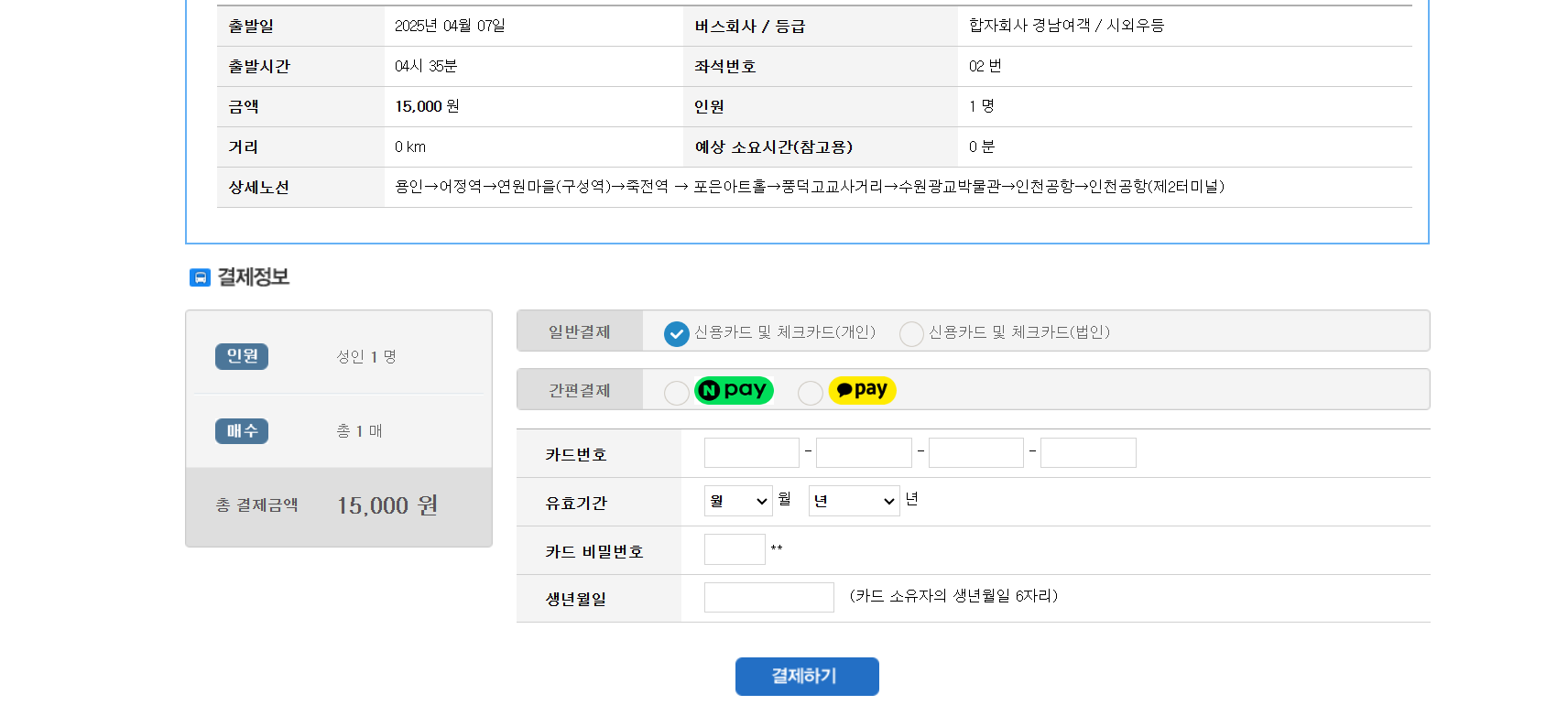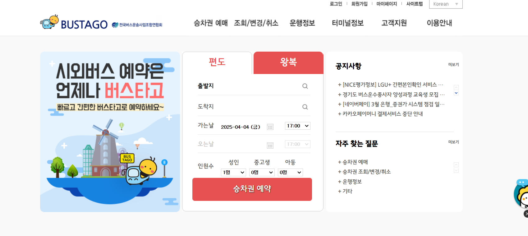 버스 타고: 네이버페이/신용카드/계좌이체 지원 (비회원 예약 가능)