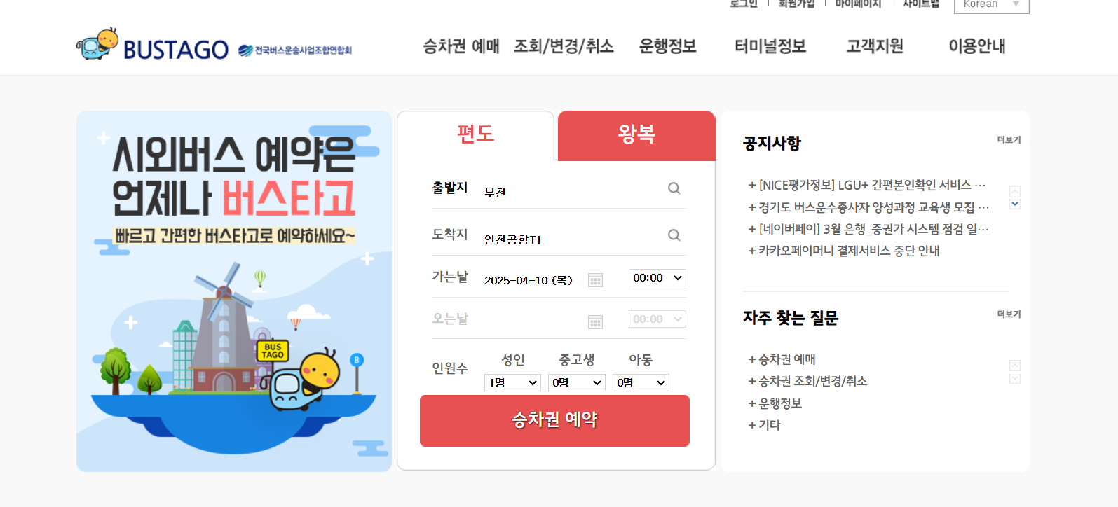 대기 시간: 버스는 교통 상황에 따라 지연될 수 있으므로, 출발 10분 전까지 승차장 도착 권장.