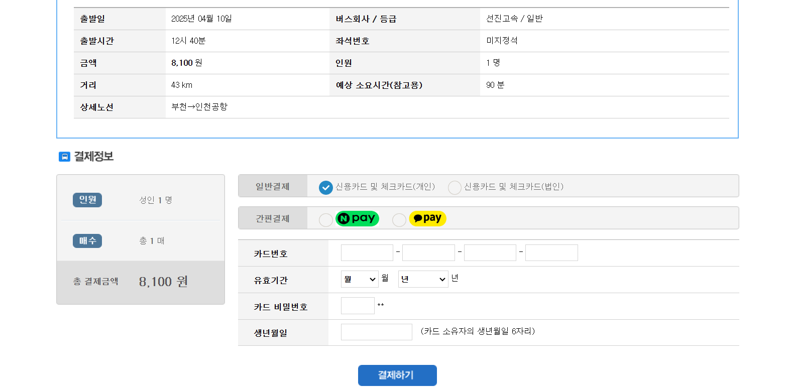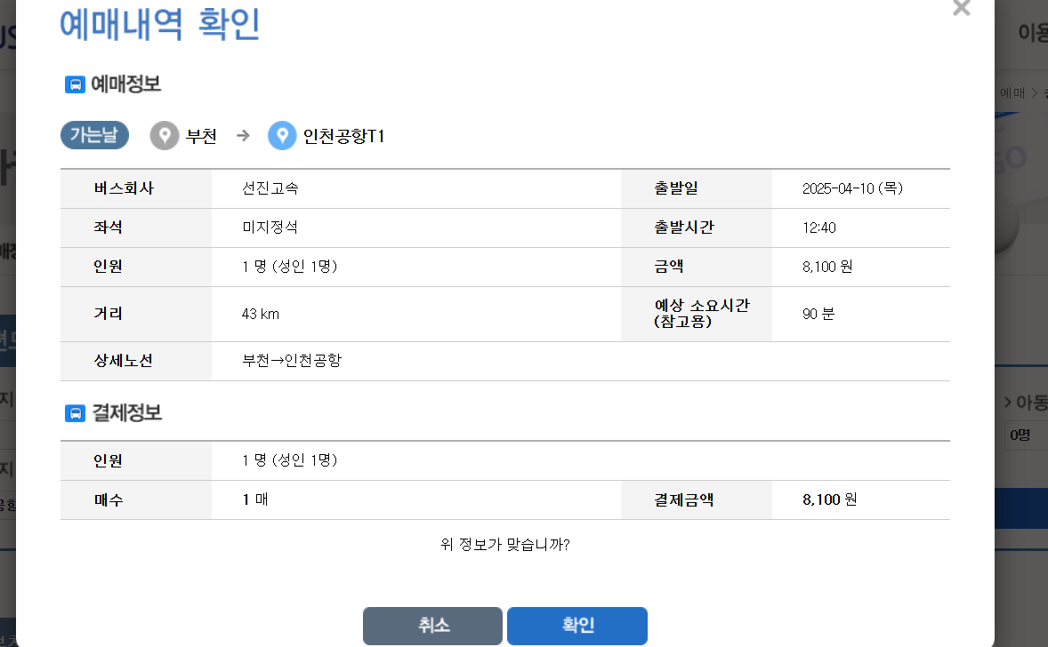 부천 → 인천공항: 버스 정류장에서 신용카드/현금 결제 (사전 예약 불가).