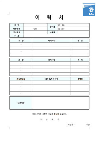 무료 이력서 양식 다운로드 사이트