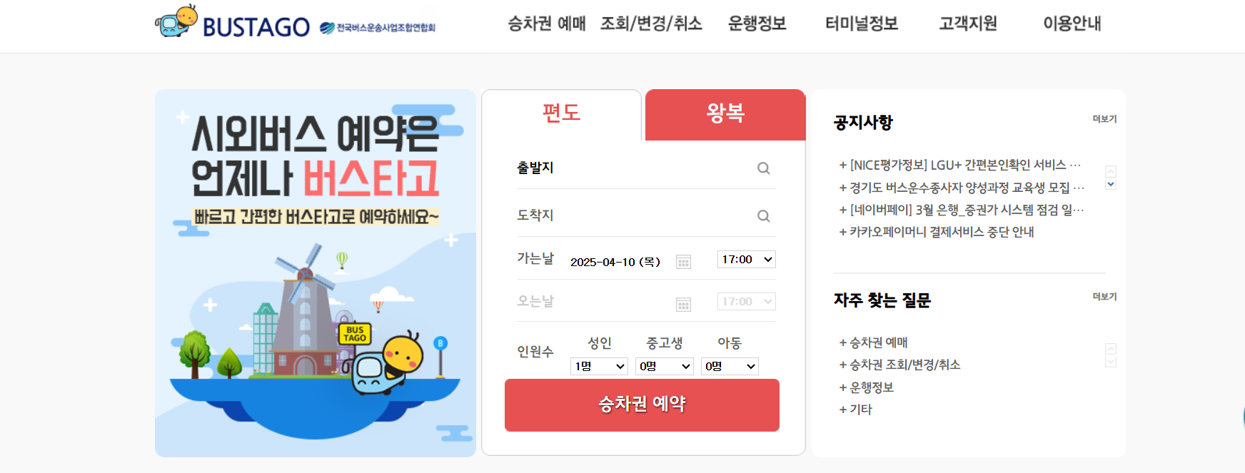 버스 타고(bustago.or.kr): 시외버스 예매 플랫폼으로, 성남 출발 공항버스 예약 가능. 신용카드, 간편 결제 등 다양한 결제 수단 지원.