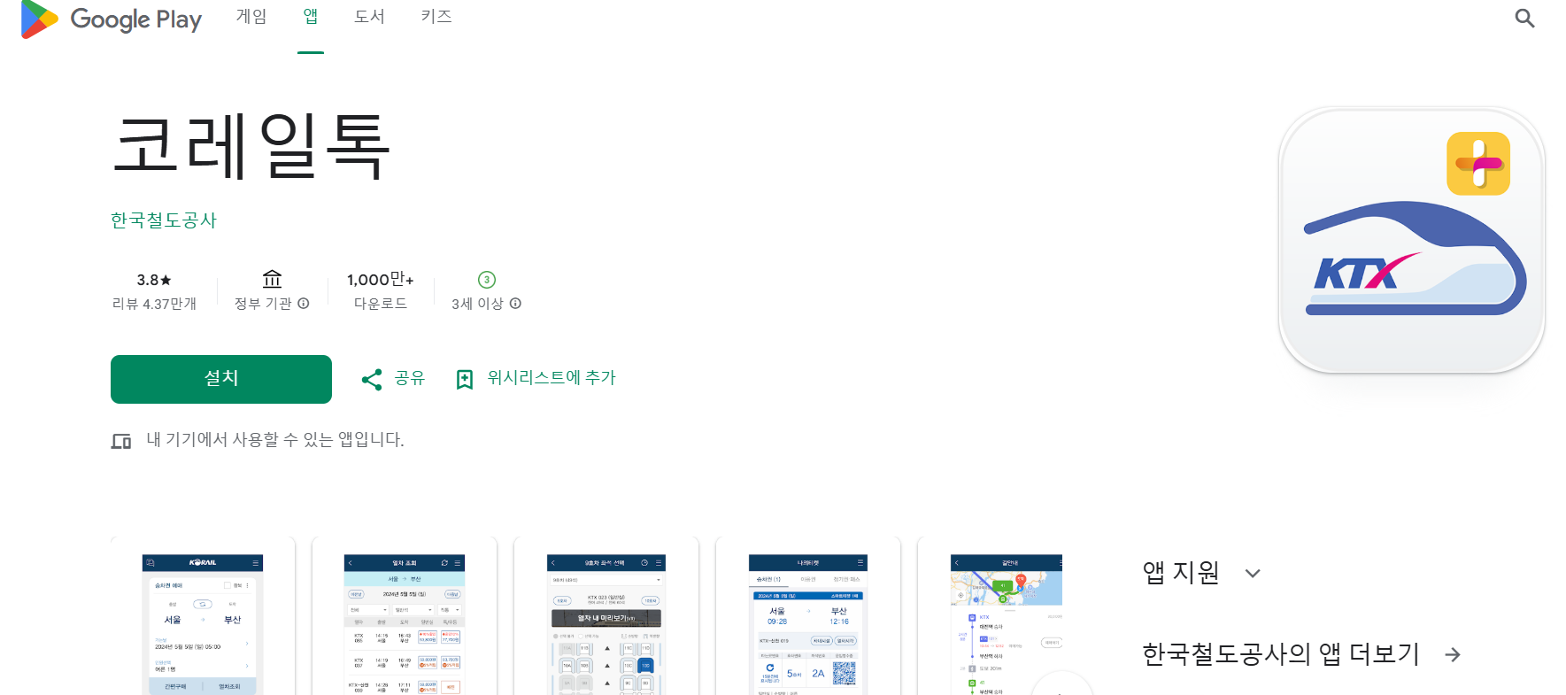 코레일톡 앱을 스마트폰에 설치하여 편하게 예매가능합니다