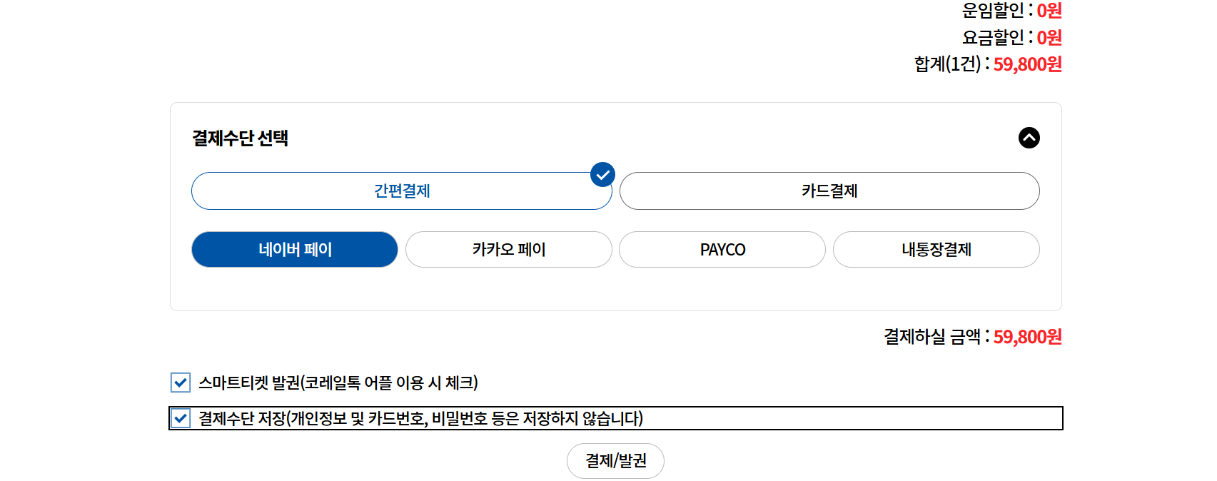 무인 발권기는 신용카드/현금 결제 지원, 빠른 발권 가능.