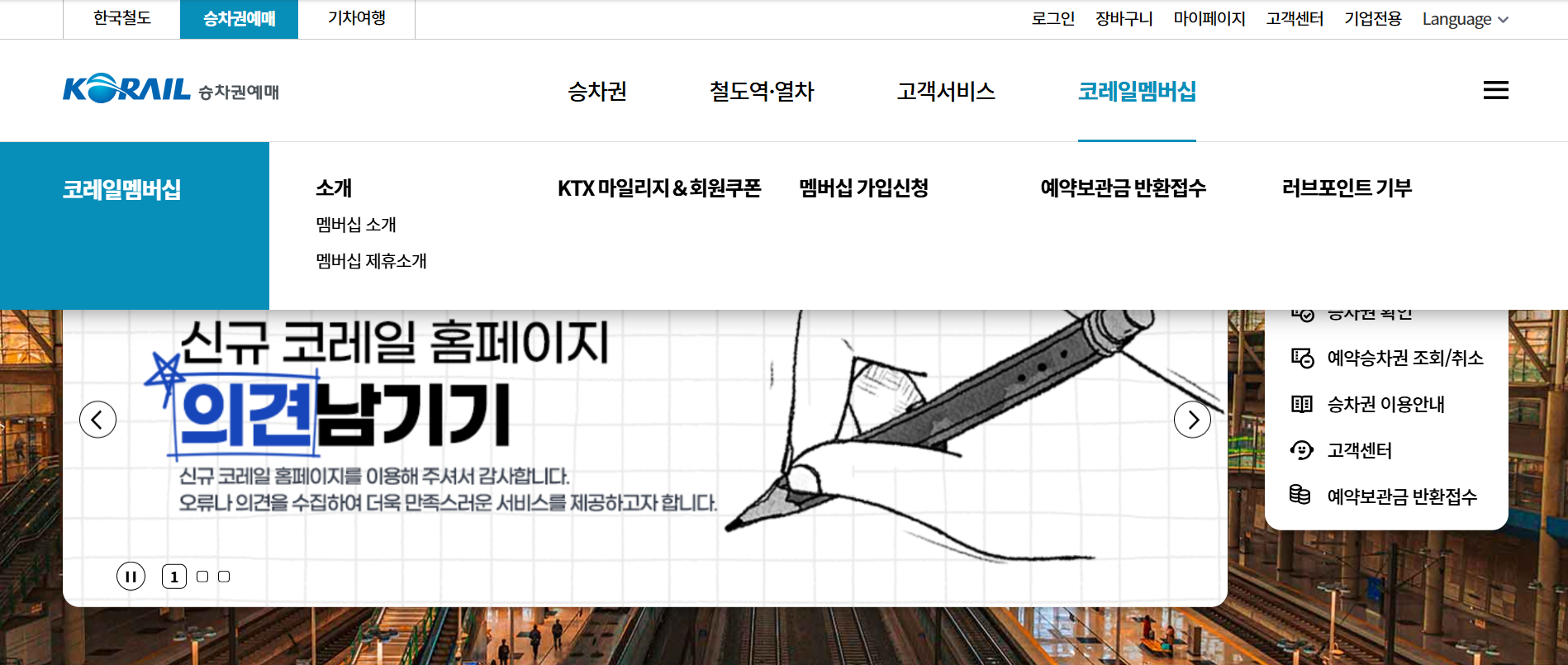 라운지: 코레일 멤버십 회원은 KTX 라운지 이용 가능.