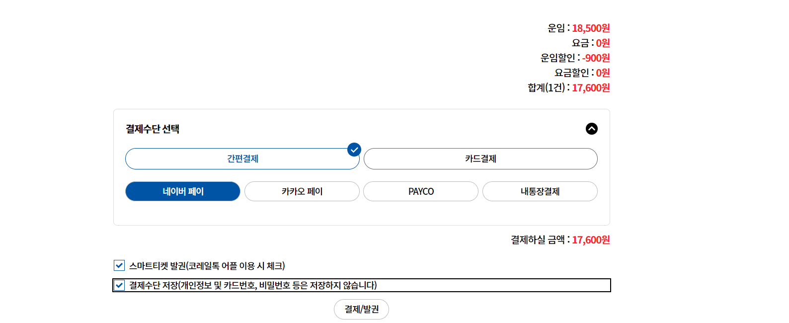 장점: 자주 이용하는 구간을 ‘즐겨찾기’로 저장해 빠르게 예매 가능.