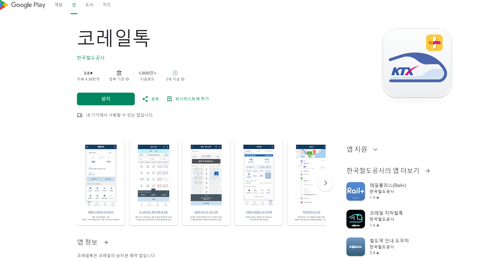 코레일톡 앱: 시간표 조회, 예매, 환승 정보 확인, 모바일 티켓 발권까지 한 번에 가능합니다