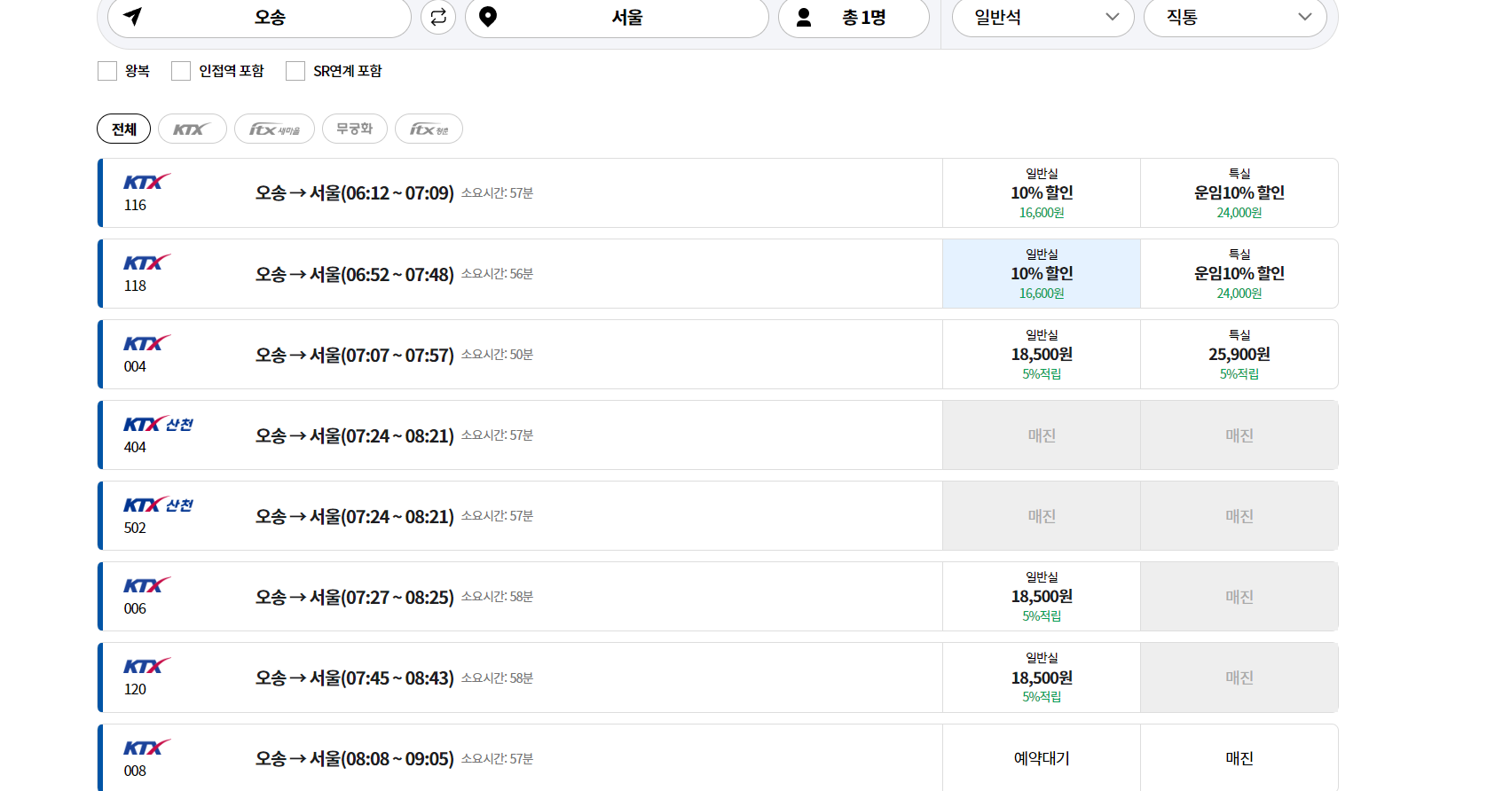 입석표 활용: 좌석이 매진되면 입석표로 이동 후 빈 좌석 이용 가능.