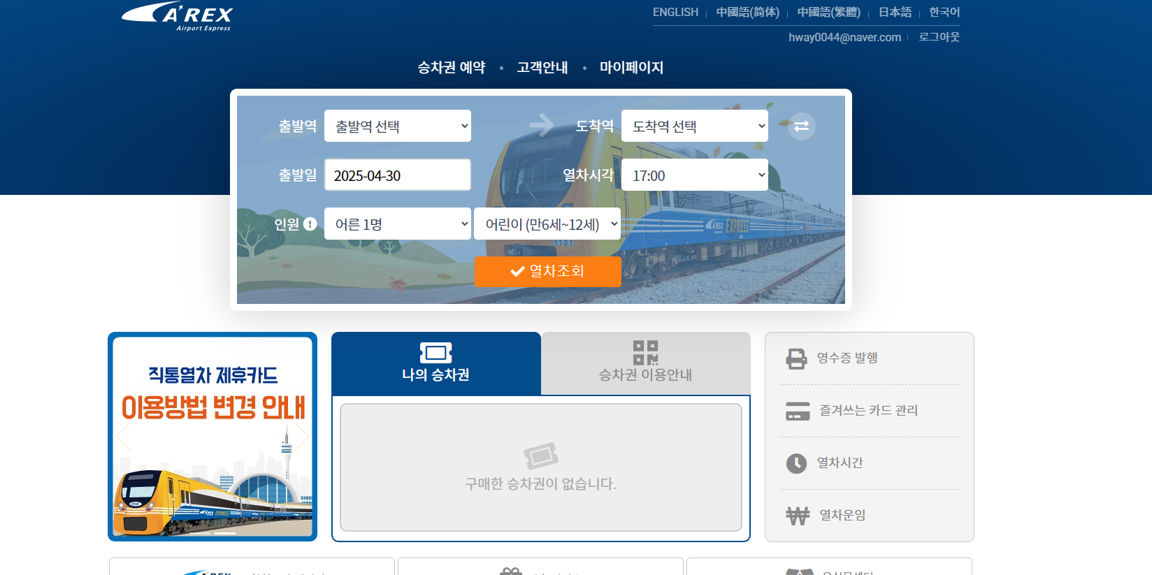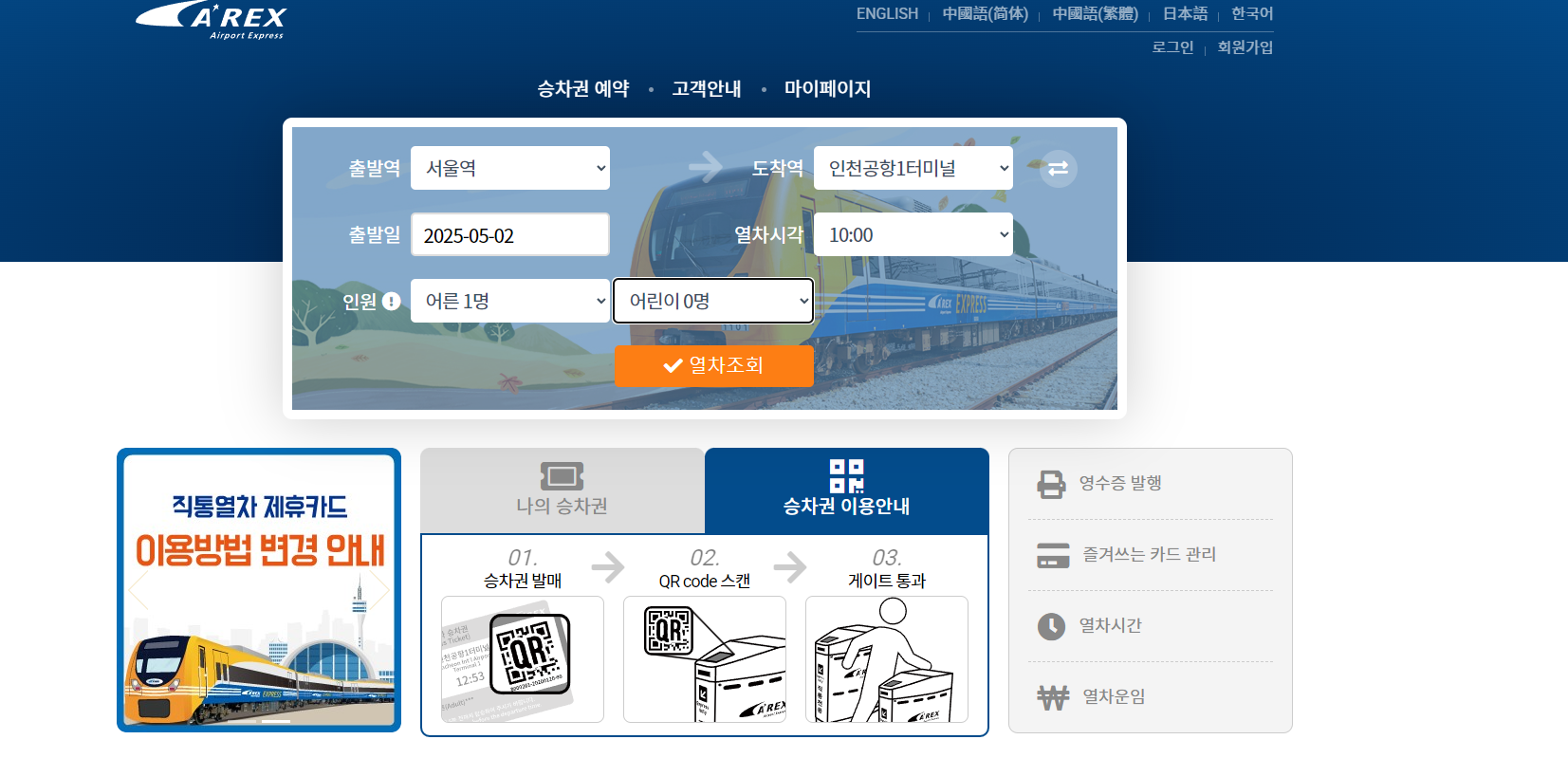 먼저 공항철도 공식 웹사이트에 접속하고,