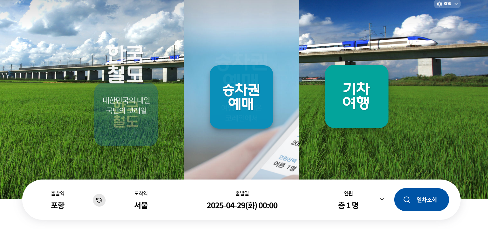 출발역(예: 서울), 도착역(포항), 날짜, 시간 입력