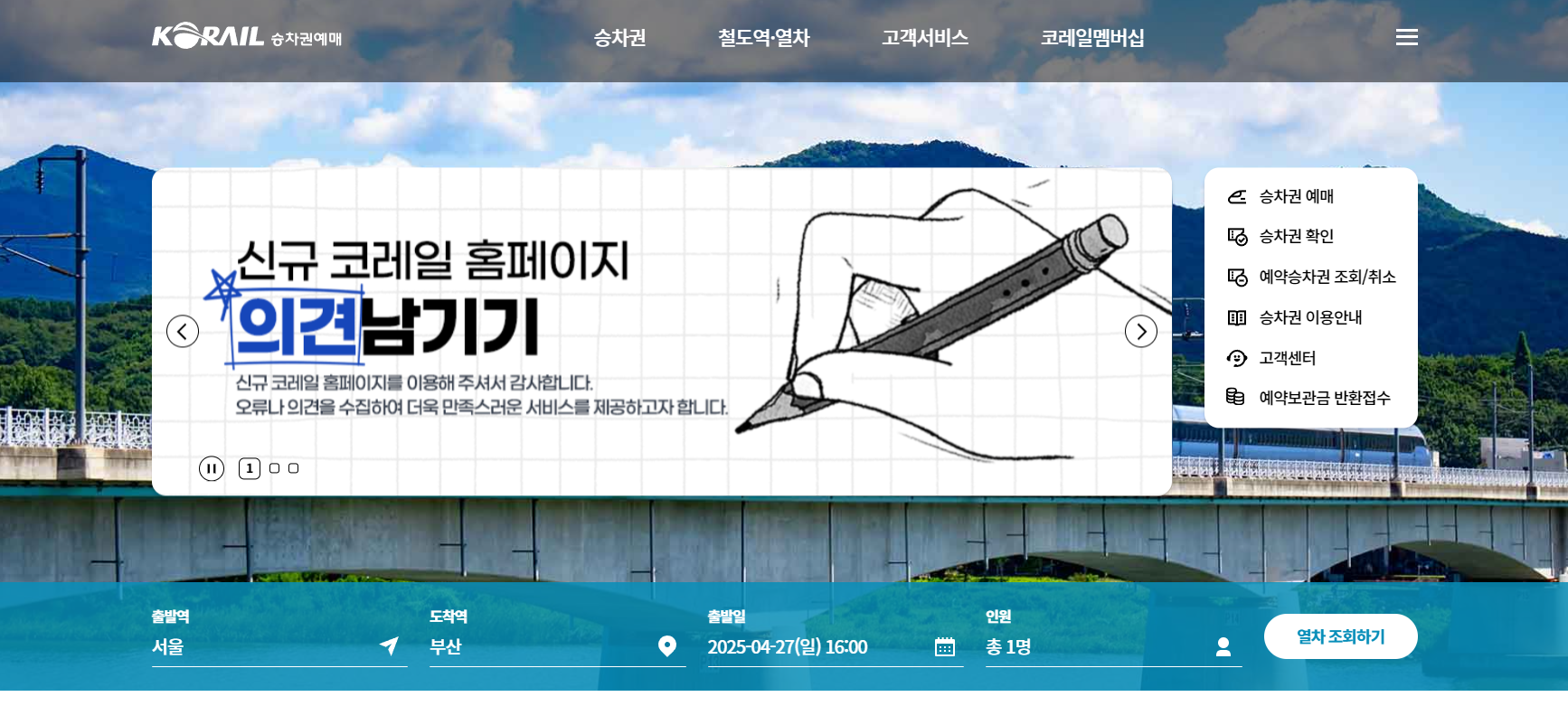 코레일 공식 홈페이지 :실시간 운행 정보와 함께 예매 가능.