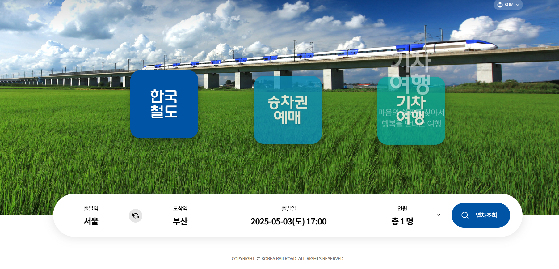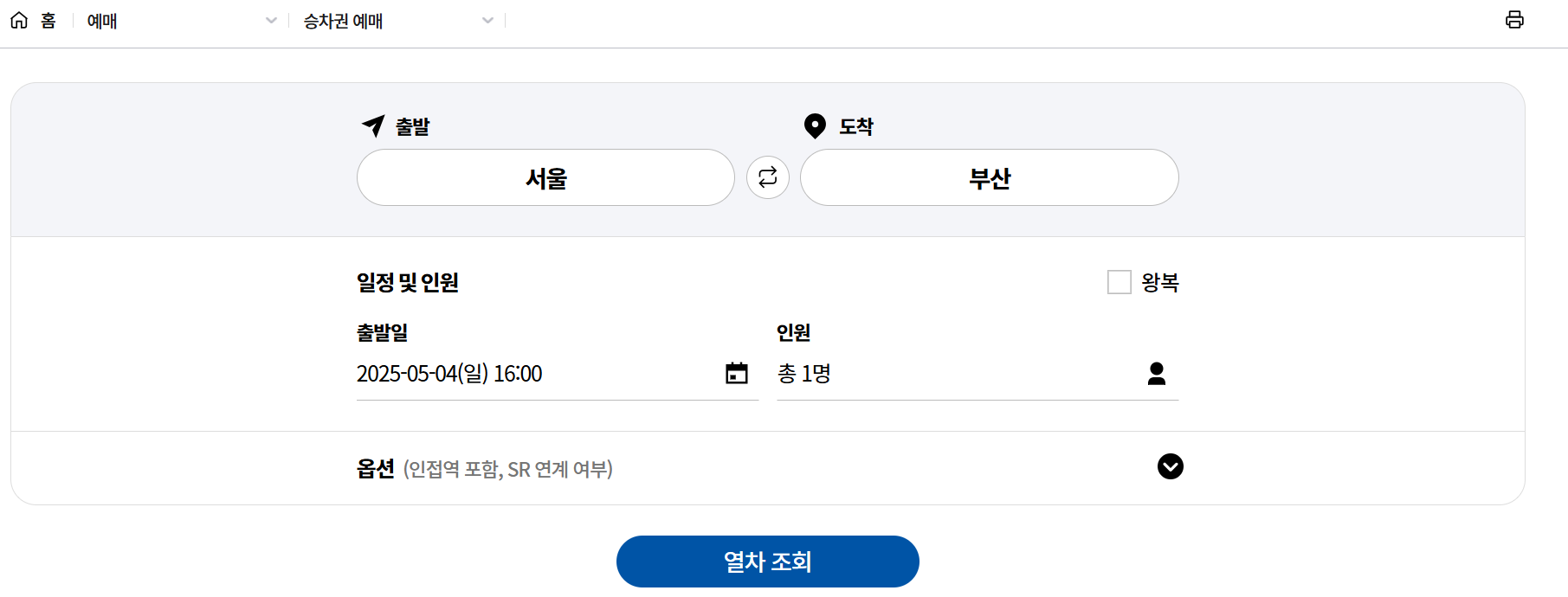 출발역과 도착역을 선택. 예: 서울역 → 부산역.