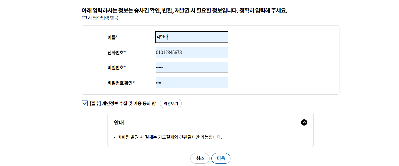 여행 정보: 출발역, 도착역, 날짜, 시간을 미리 정리.