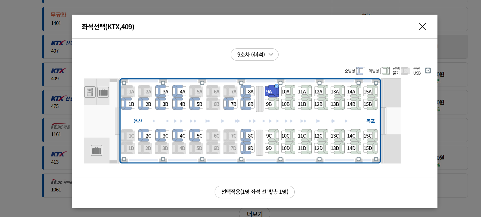 원하는 시간대의 열차를 선택합니다