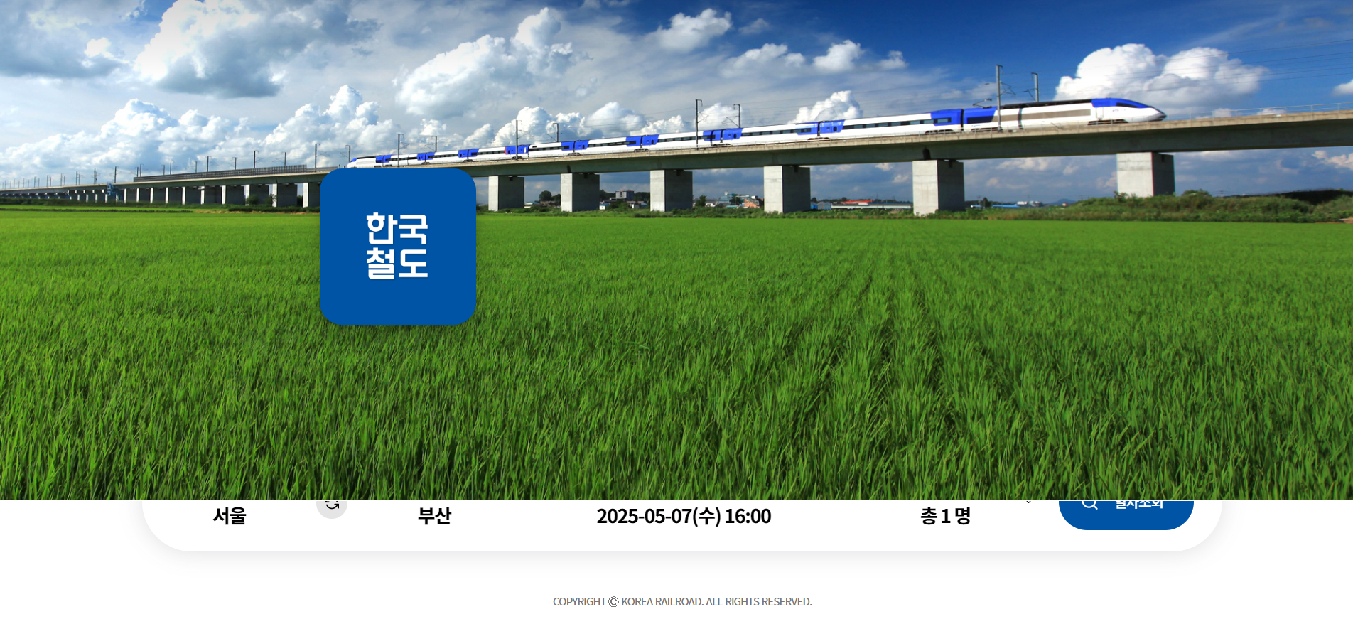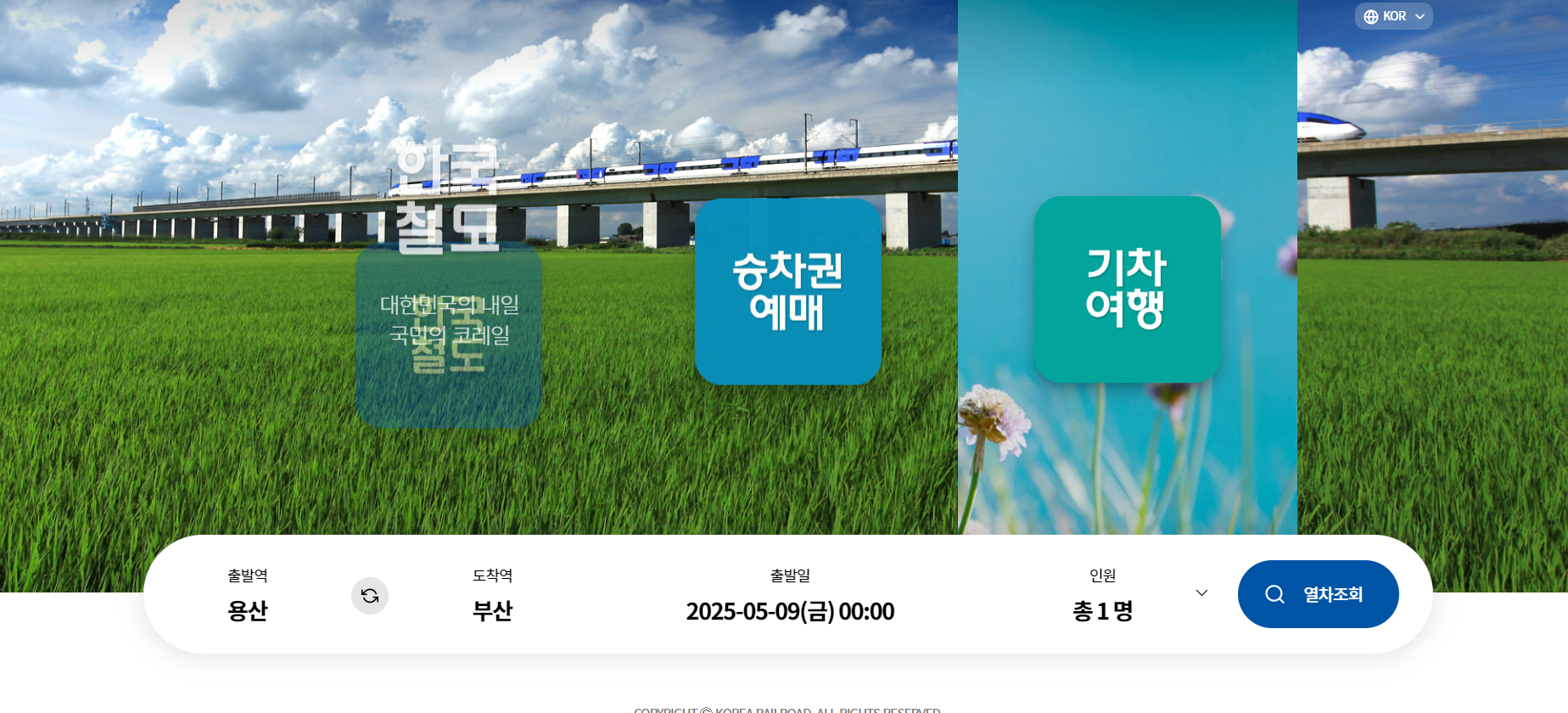 먼저 코레일 사이트에 접속해 줍니다. 출발지와 도착지 입력 후,