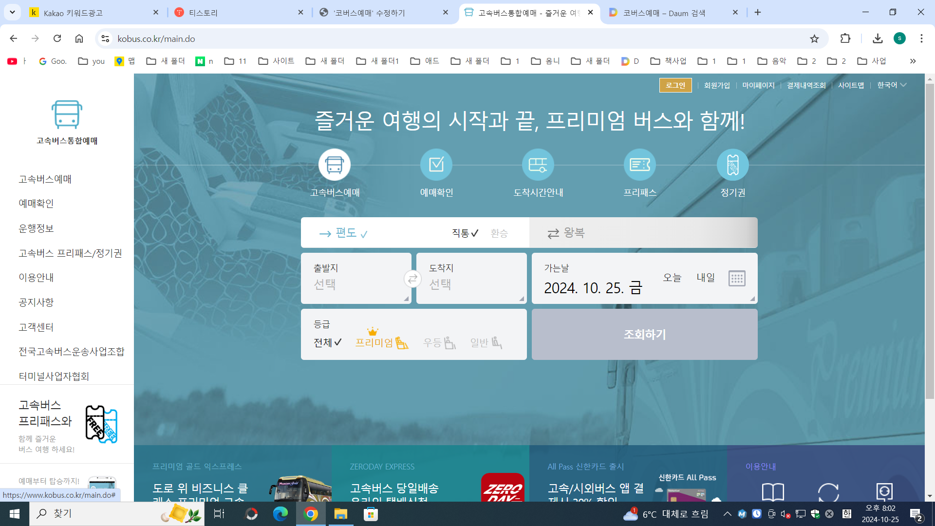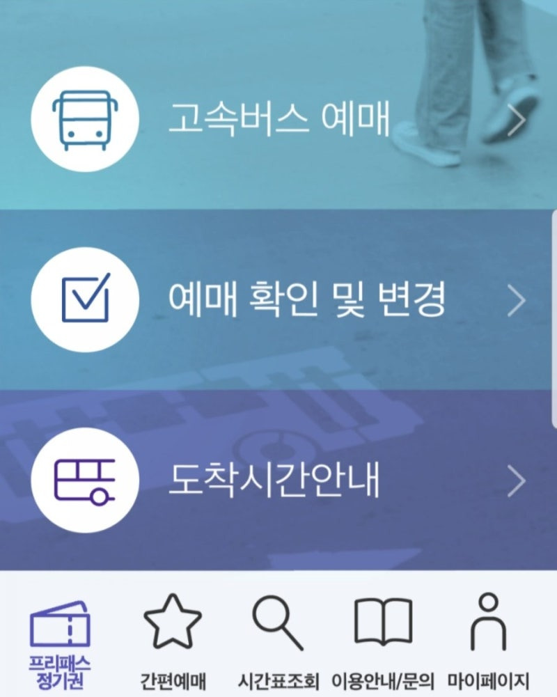 - 예매 메뉴 선택 : '고속버스 예매' 메뉴를 선택합니다.