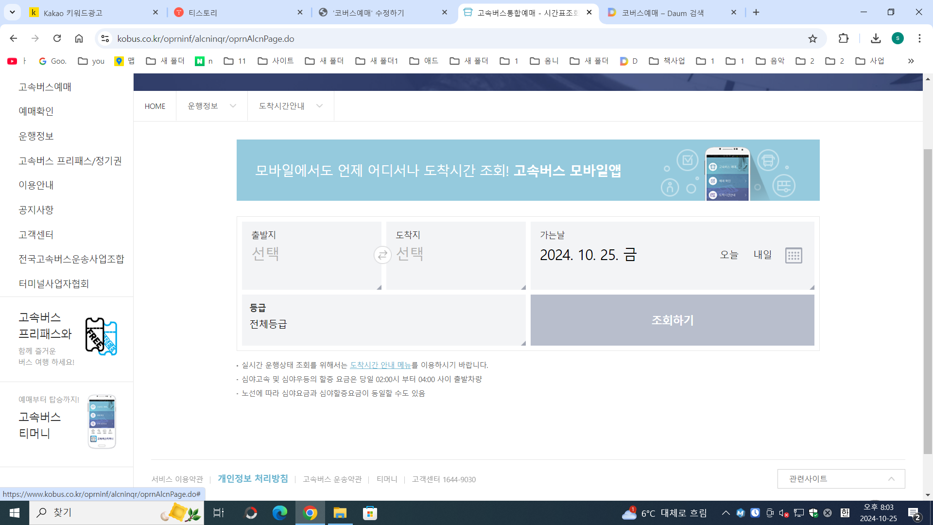 - 출발지, 도착지 입력 : 웹사이트와 마찬가지로 출발지와 도착지를 입력합니다.