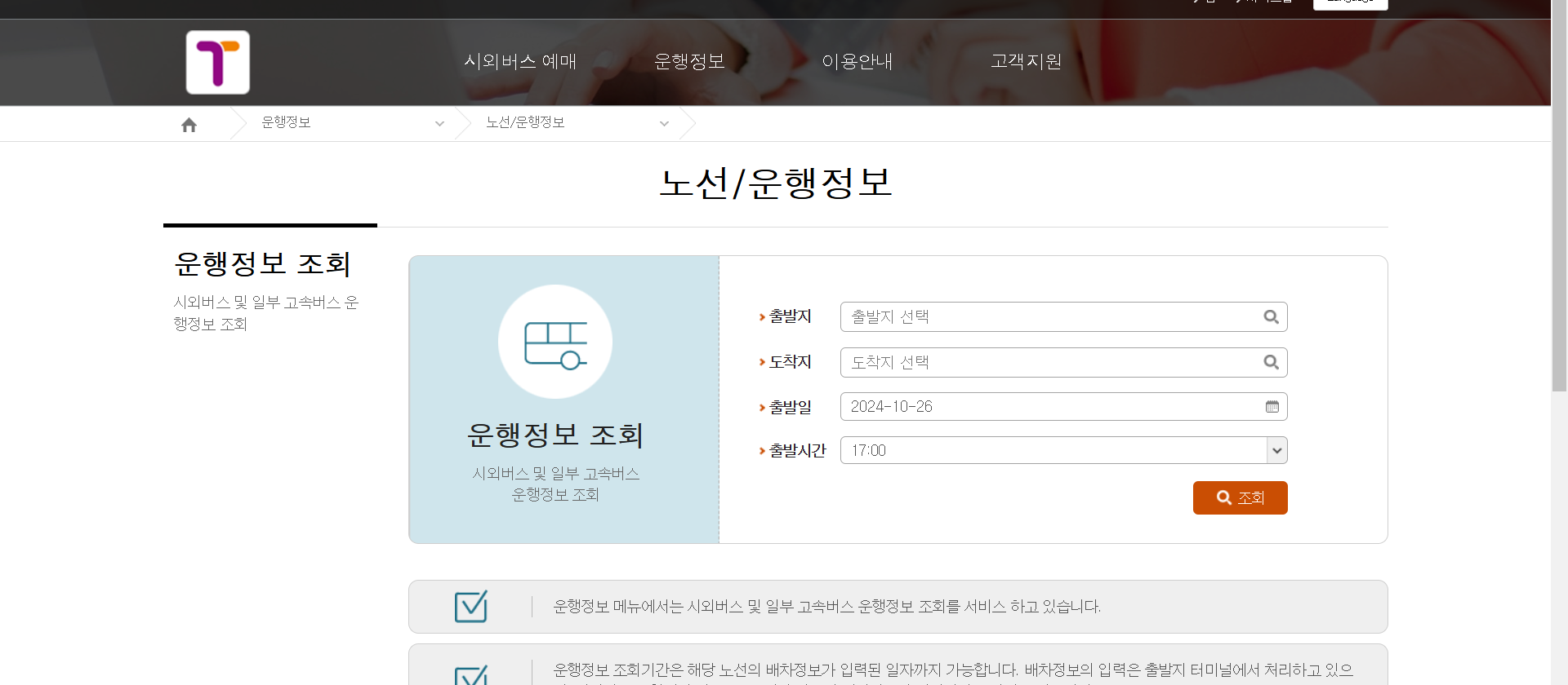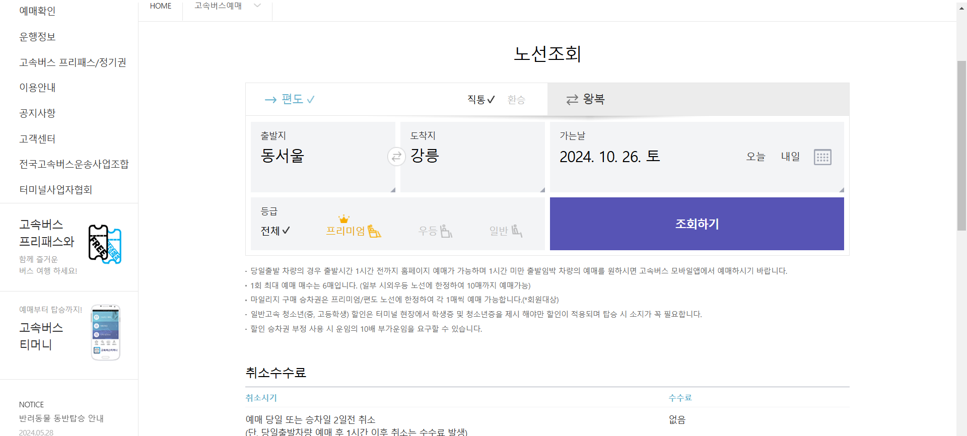 - 예매 변경은 터미널 내 고객센터를 통해 가능합니다. 수수료가 발생할 수 있으니 참고하시기 바랍니다.