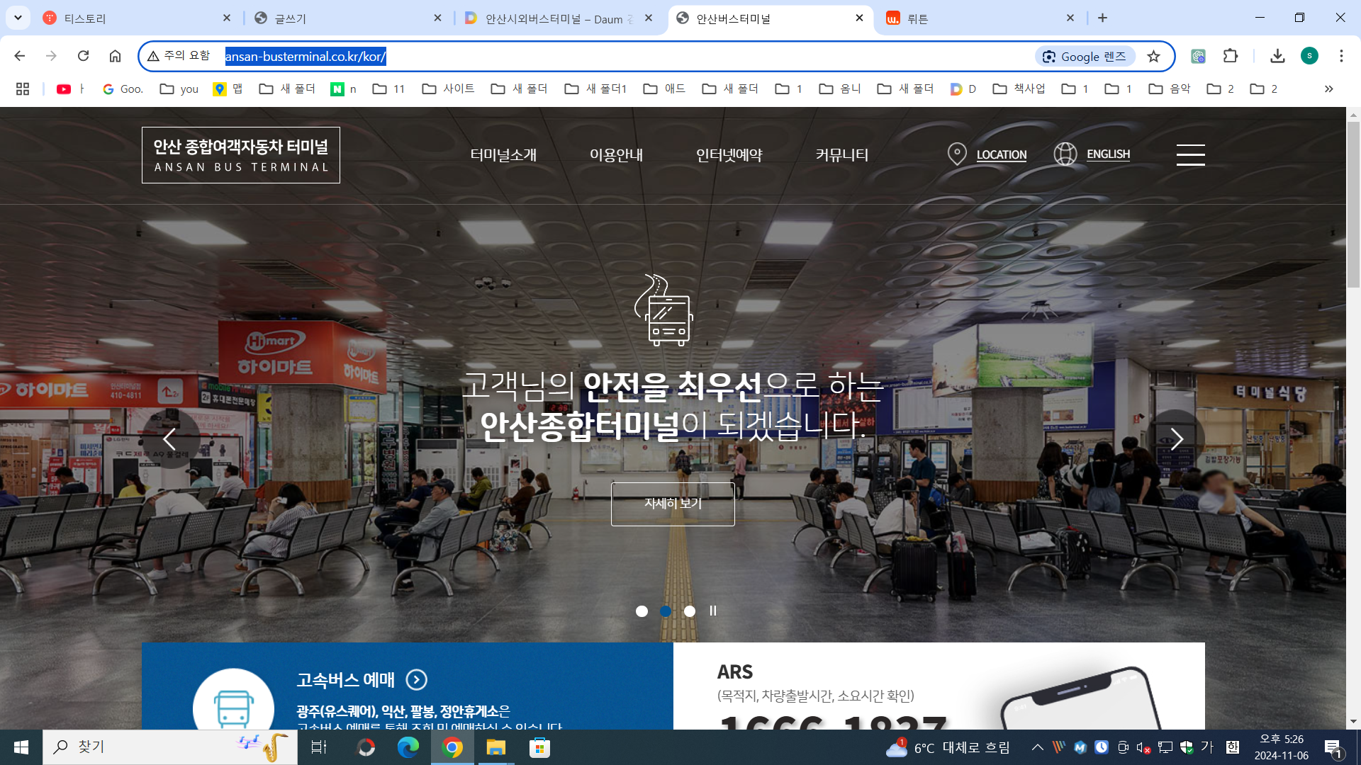 안산터미널 홈페이지접속 안산터미널 홈페이지 바로가기