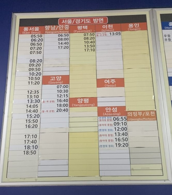 시외버스 시간표