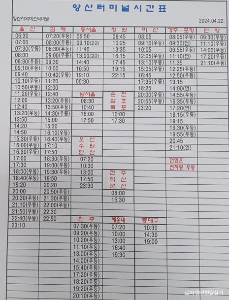 양산 시외버스터미널의 시간표는 주기적으로 업데이트되므로, 항상 최신 정보를 확인하는 것이 중요합니다