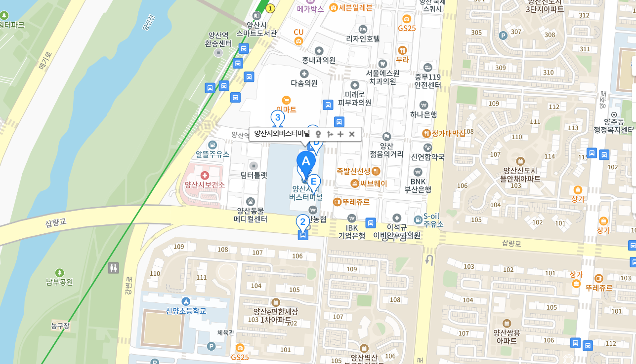 양산 시외버스터미널 주변에는 다양한 편의 시설이 있습니다. 터미널 내부에는 매표소, 대기실, 화장실 등 기본적인 시설이 갖춰져 있으며, 주변에는 식당, 카페, 편의점 등이 위치해 있어 여행 전후로 필요한 물품을 구매하거나 식사를 할 수 있습니다.