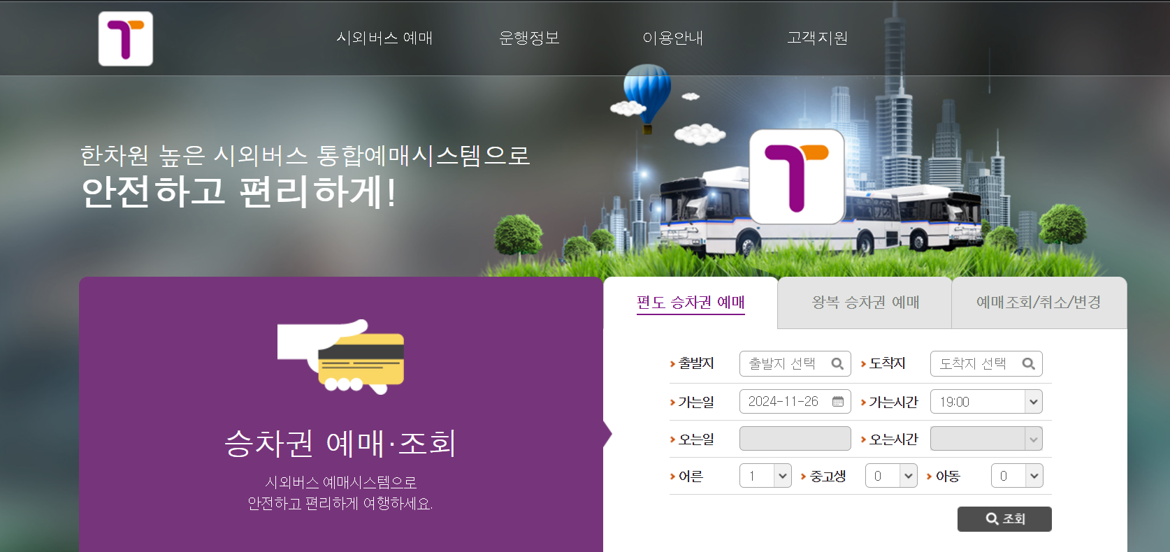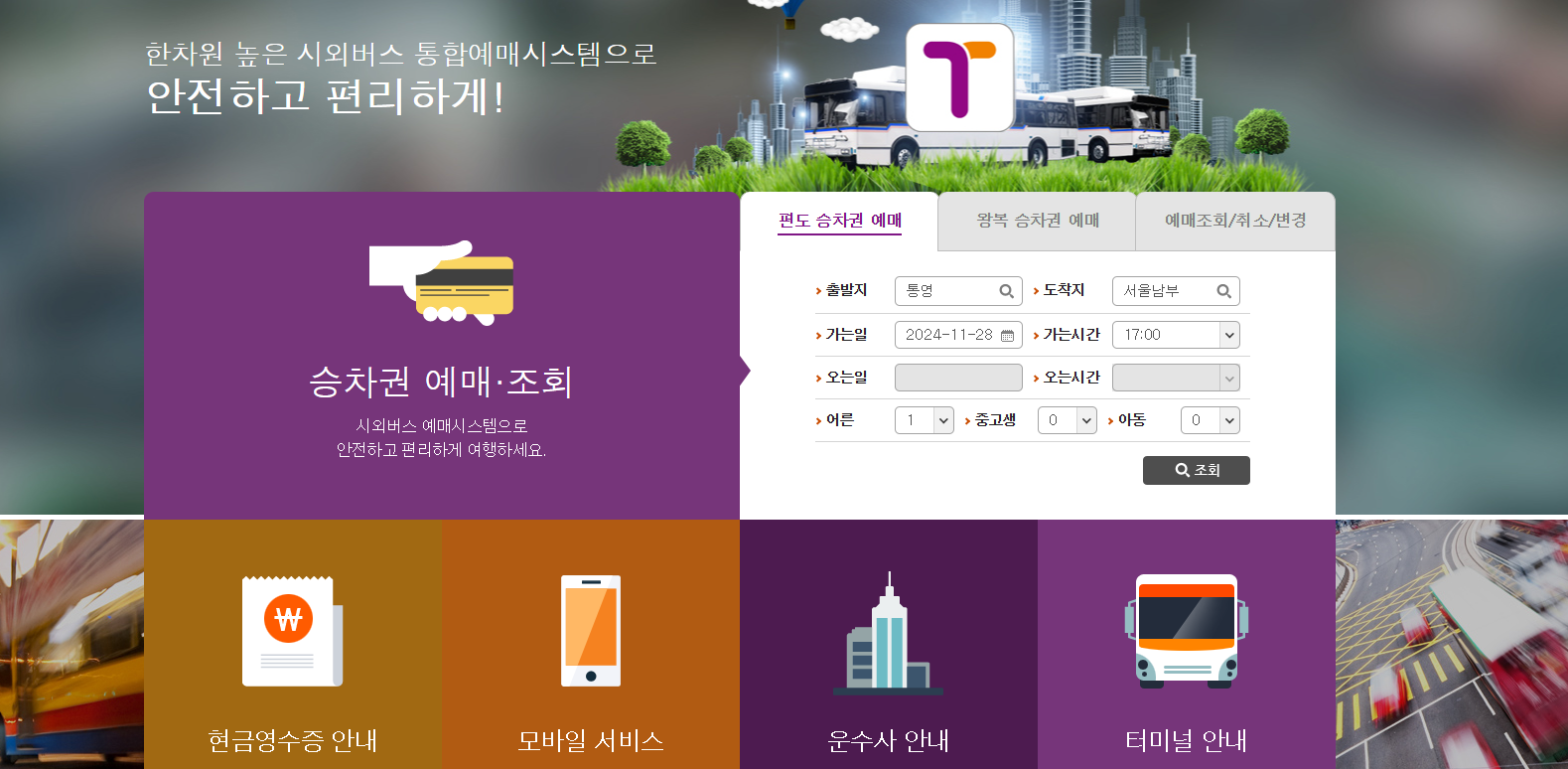 티머니 시외버스통합 웹사이트를 통해 예매 가능