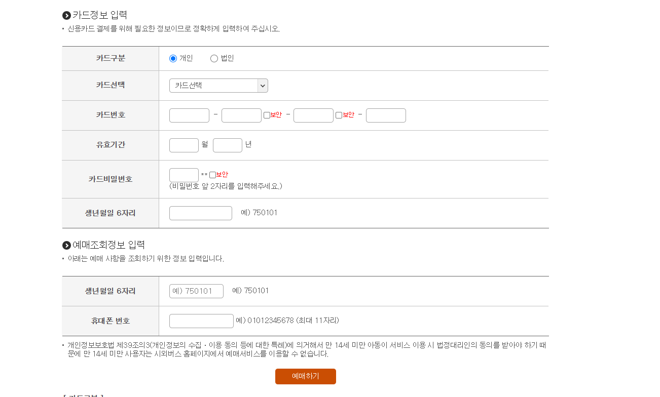 카드정보를 입력하여 예매를 완료합니다