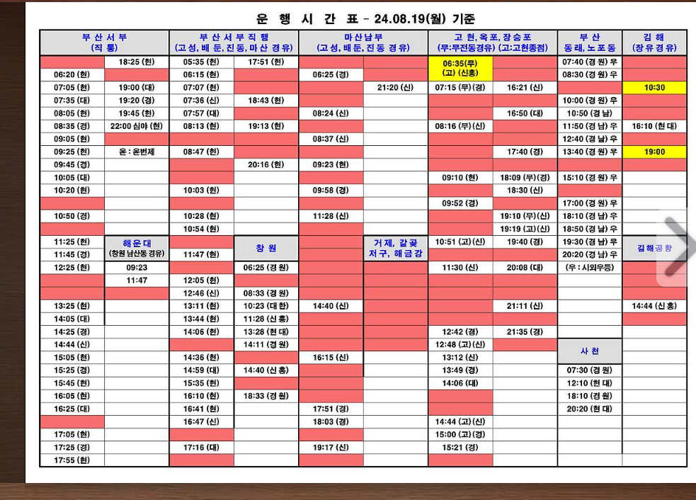 통영종합버스터미널에서는 다양한 도시로 향하는 버스가 운행됩니다. 주요 노선별 시간표를 살펴보겠습니다.