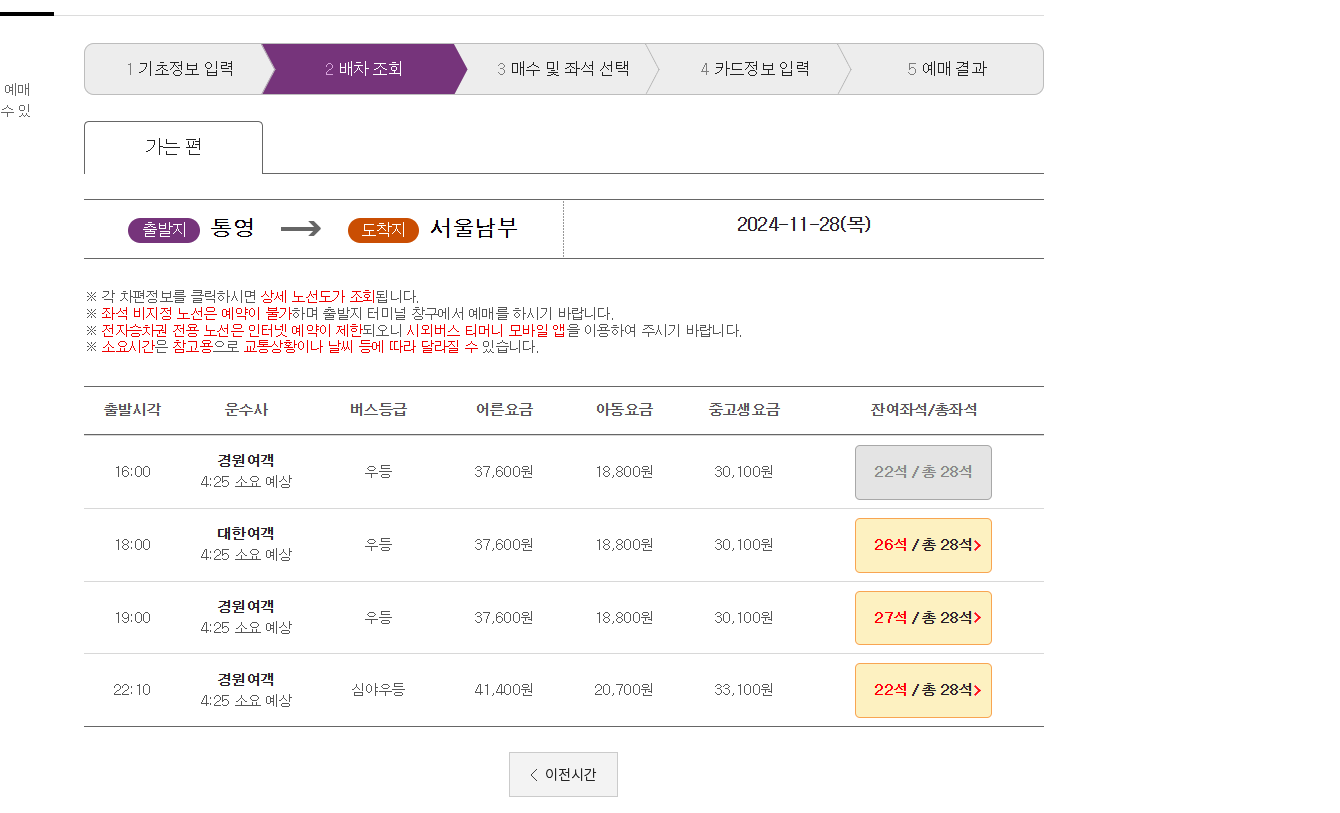 노선 선택 및 예매 진행