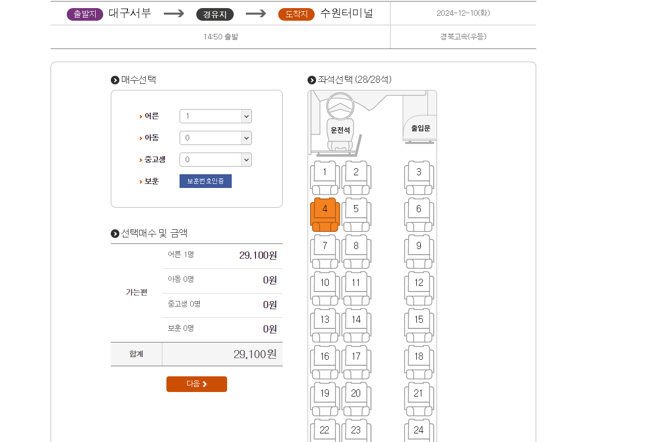 출발 1시간 전까지 예매 가능합니다.