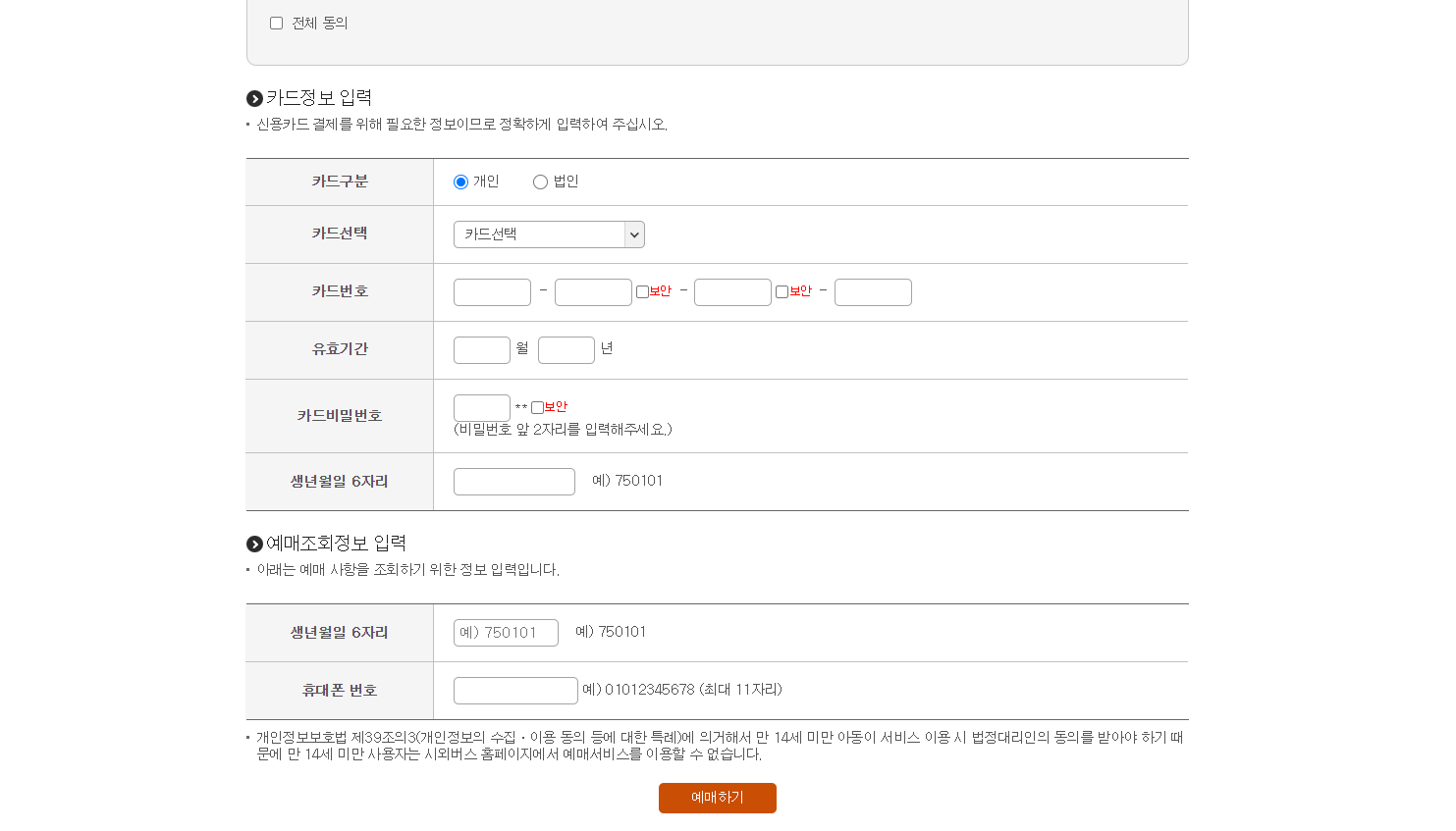 카드정보를 입력하여 예매를 완료합니다