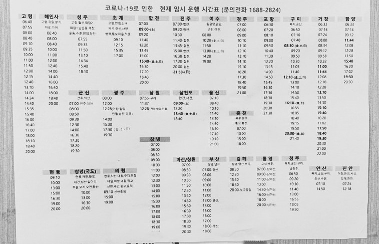 사천으로 가는 버스는 다음과 같이 운행됩니다