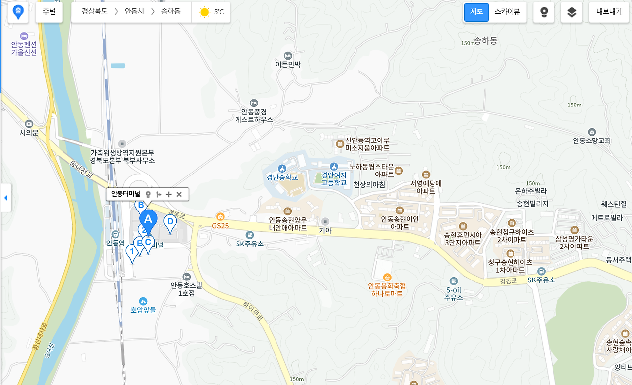 안동 터미널 주변에는 다양한 편의 시설과 관광지가 있습니다.