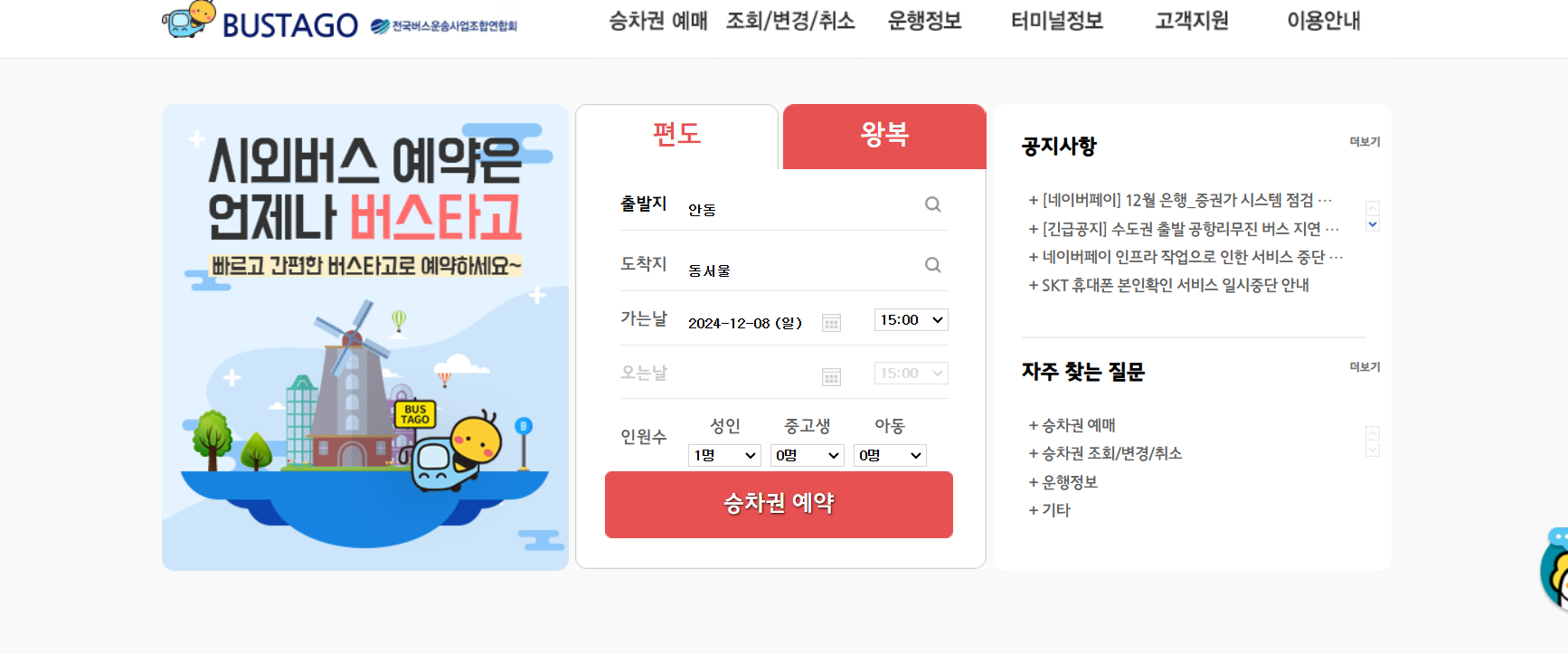 안동 터미널의 버스를 예매하는 방법은 다음과 같습니다: