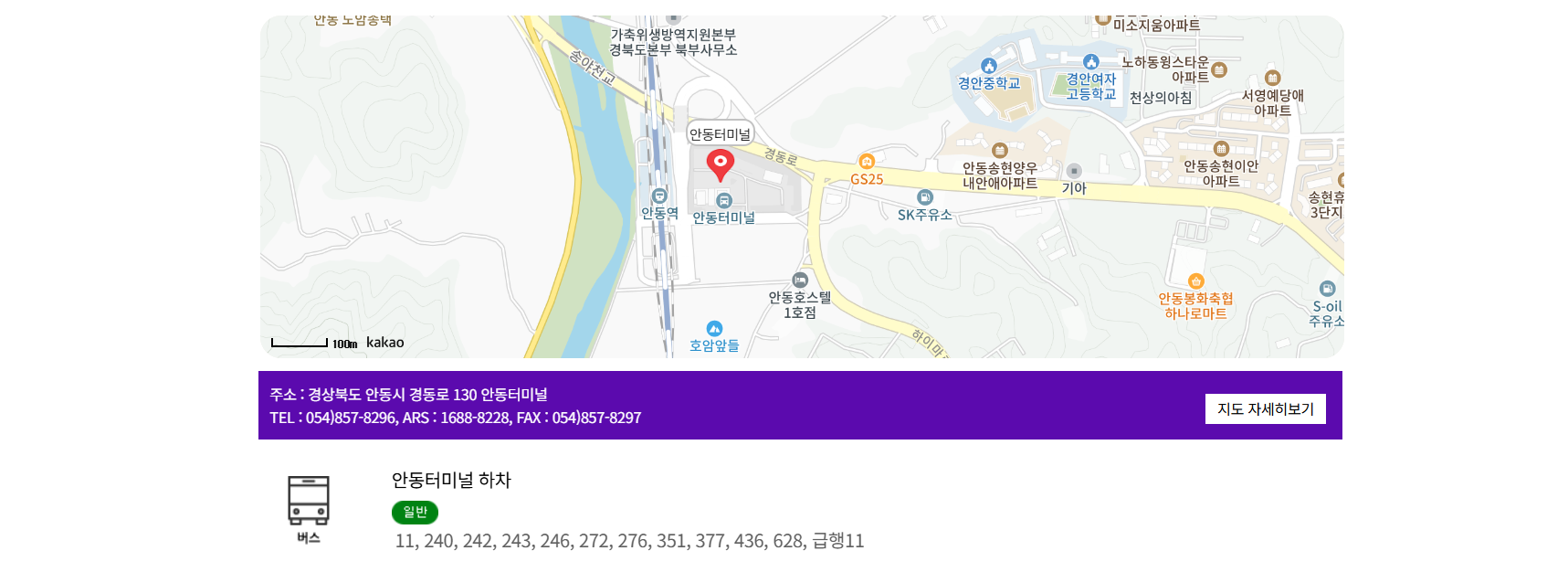 - Q: 안동터미널의 전화번호는 무엇인가요?
